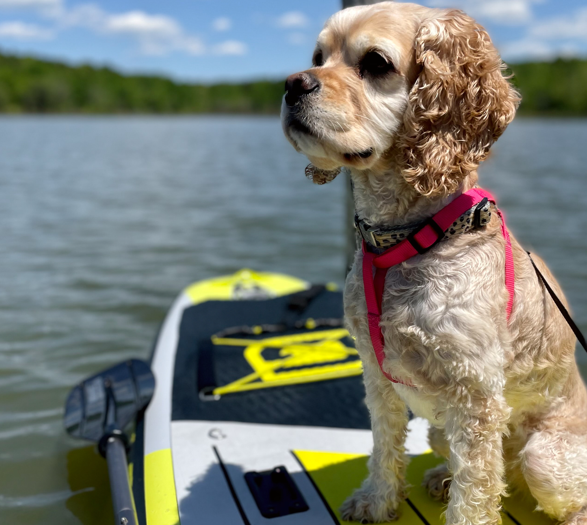 Many people ride our boards with their dogs. Be careful and watch your balance!.