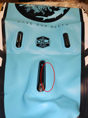To determine if your paddle board is eligible for a replacement, please locate the serial number on your board. The serial number is located next to the center fin box on the bottom of your paddle board. It will begin with the letters “LW” followed by 6 numbers.